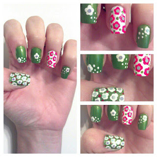 (<HOW-TO: First you paint a regular coat of dark polish all over your nail. Quickly put a few small dots of lighter polish on your nail while everything is still wet. Swirl them together to create a marble effect with either a fine brush, a toothpick or a needle. Easy! The more you mix them together the more subtle the design will be, the less you touch it the more dramatic it will be.)
